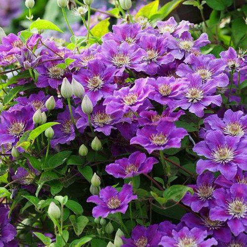 Цветки клематиса Ашва — это настоящее произведение искусства. Они изящные и благородные, крупного размера (диаметр 5-8 см) с округлой формой и шестью лепестками, которые своим почти круглым профилем и изогнутыми краями создают эффект лёгкости и воздушности. Пурпурно-фиолетовая окраска лепестков, украшенная красной полоской посредине и более тёмным основанием, придаёт растению особую индивидуальность. Тычинки бело-розового цвета прекрасно подчеркивают многообразие окраски. Аромат цветков сладкий и интенсивный, что делает клематис не только визуально привлекательным, но и создаёт приятную атмосферу в вашем саду.
