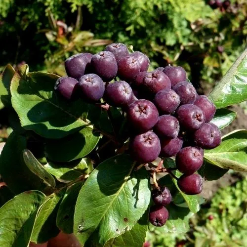 Красивая ягода на кустах, черно-пурпурного цвета. По размеру большая, мякоть сладкая, сочная. Урожай собираем примерно в первых числах декабря, в конце ноября. В основном делаем заготовки. Из этой рябины получается ароматный ликер, терпкий и насыщенный. Джем тоже получается вкусный. Цветет куст красиво бело-розовыми цветками, крупными соцветиями, аромат дают вкусный. Он сам по себе даже привлекательный, если сажать как декоративное растение. У нас на участке 2 растения. Смотрятся эффектно. Довольны покупкой, спасибо!